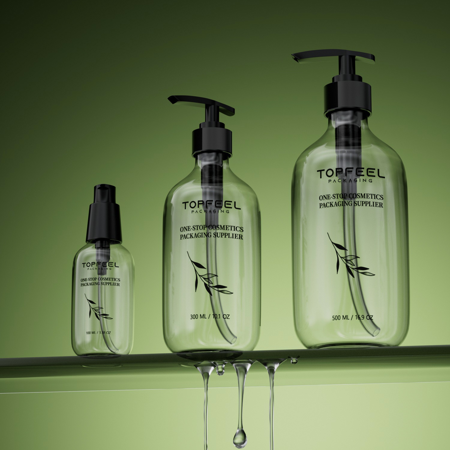 Apẹrẹ Igo Boston Classic: Apẹrẹ igo Boston jẹ́ apẹrẹ igo apoti ti o wọpọ ati ti o wulo. O ni awọn ila didan ati mimu itunu, eyiti o rọrun fun awọn alabara lati di mu lakoko iwẹ. Ju bẹẹ lọ, eto igo yii duro ṣinṣin. Ko rọrun lati yi nigbati a ba fi si ori selifu. Boya a gbe e si ori selifu baluwe tabi lori selifu supermarket, o le ṣetọju ipo ifihan ti o dara, ti o mu ipa ifihan ọja naa pọ si.